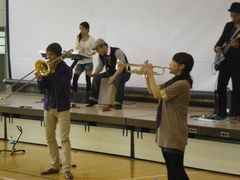 いつものライブは屋外なので、体育館で演奏というのは大変新鮮です。