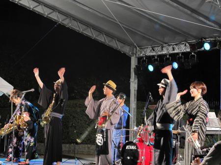 人出の多い中、いい感じの照明の中(夏フェスっぽかった)で気持ちよく