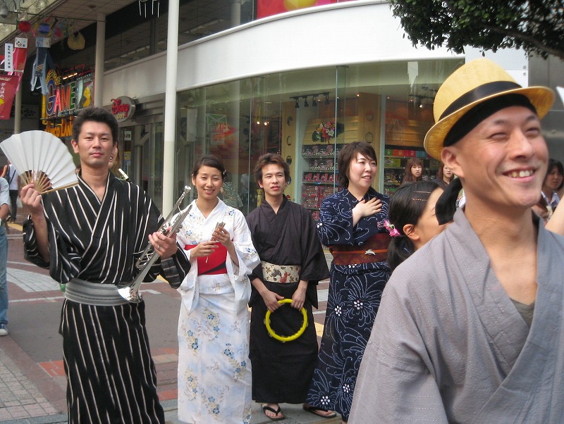 それを逆手にとって、「浴衣で楽器を持って」町を少し歩いてみました。
