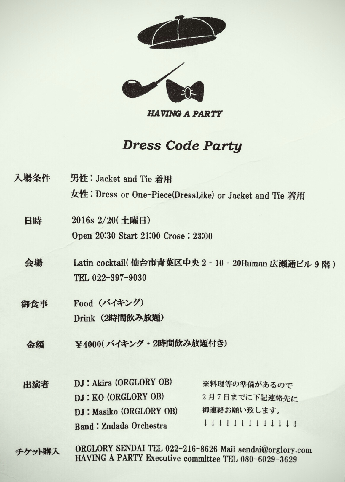 Or gloryのOBさんによるDJと、我々Zndada ORCHESTRAの出演となります。